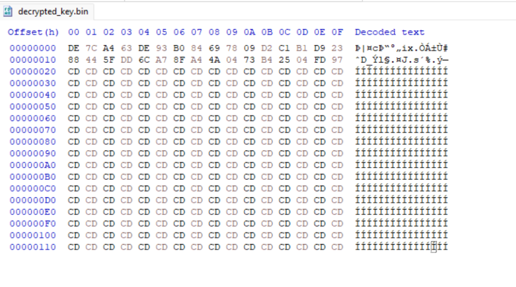 Sau khi giải mã và ghi ra file, khóa nhận được là 32byte – AES-256